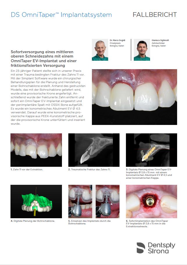 DS OmniTaper – Fallbericht Sofortversorgung mittlerer oberer Schneidezahn mit Acuris – Dr. Degidi