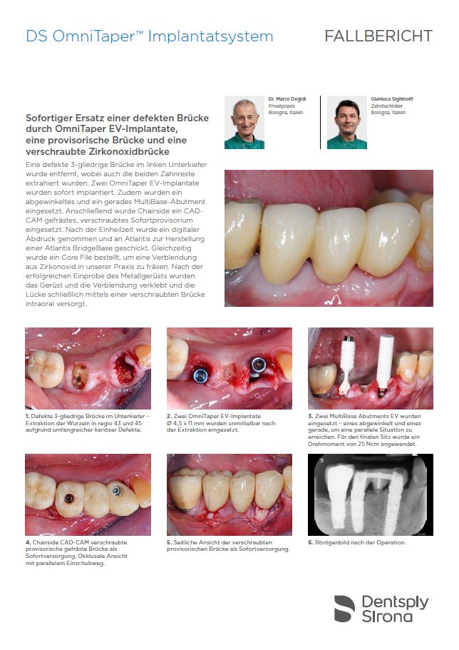 DS OmniTaper – Fallbericht provisorische Brücke und eine verschraubte Zirkonoxidbrücke – Dr. Degidi