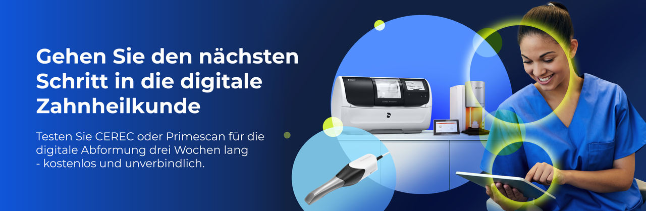 Mit dem Angebot, über eine Leihstellung Primescan und CEREC probeweise direkt in Ihre Praxis zu integrieren, eröffnen sich für Sie viele Möglichkeiten. Sie entscheiden, womit Sie anfangen: Mit dem Intraoralscanner Primescan für die digitale Abformung oder mit CEREC – als Ergänzung zu Ihrem Intraoralscanner oder als komplett neues System für die Inhouse-Fertigung.