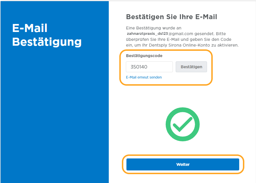 Ihr Konto muss jetzt noch bestätigt werden. Dieser Vorgang kann bis zu fünf Arbeitstage dauern. Sobald Ihr Konto validiert ist, können Sie aus dem Online-Katalog von Dentsply Sirona kaufen