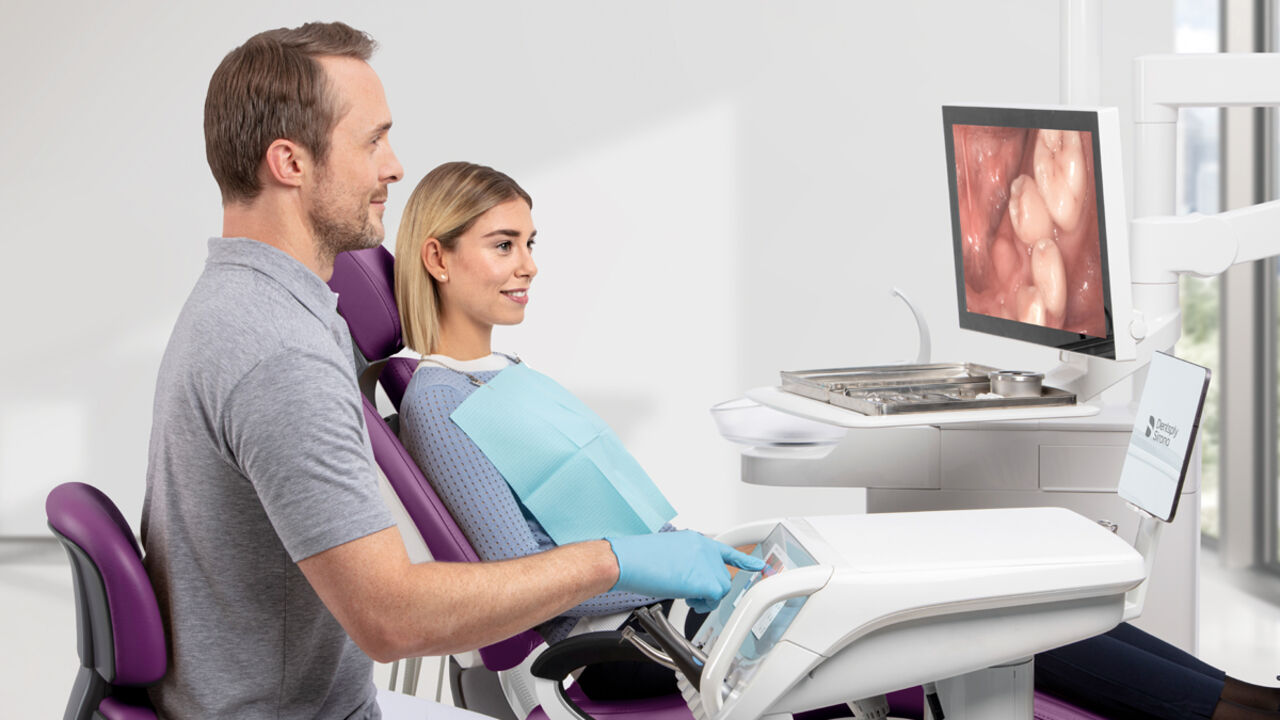 Gute Kommunikation ist der Schlüssel zu Ihrem Patienten. Durch die SiroCam AF+ Kamera und den 22“-Sivision-Monitor an der Behandlungseinheit können intraorale Aufnahmen, Röntgenbilder oder Videos direkt an der Behandlungseinheit mit Ihrem Patienten besprochen werden.