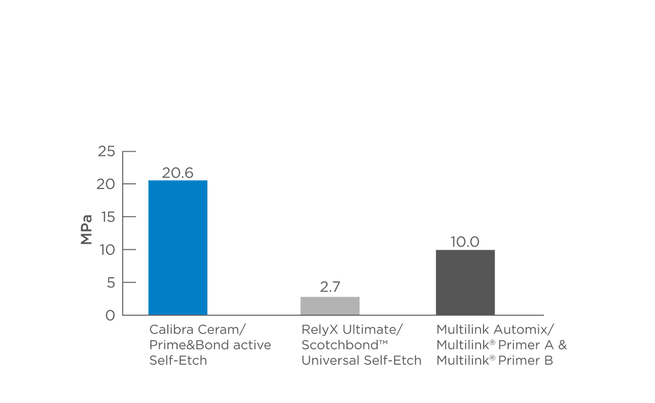 Calibra Ceram cement provides impressive high strength when used with Prime&Bond active, as well as quick and easy cleanup.
