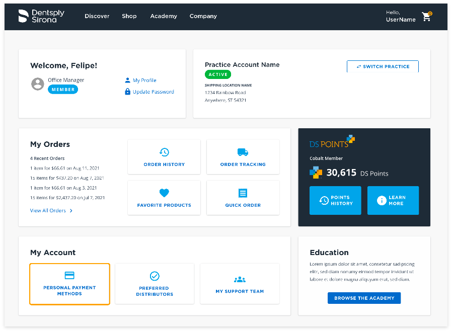 1. Hover over your name in the top-right corner of DentsplySirona.com and select My Account