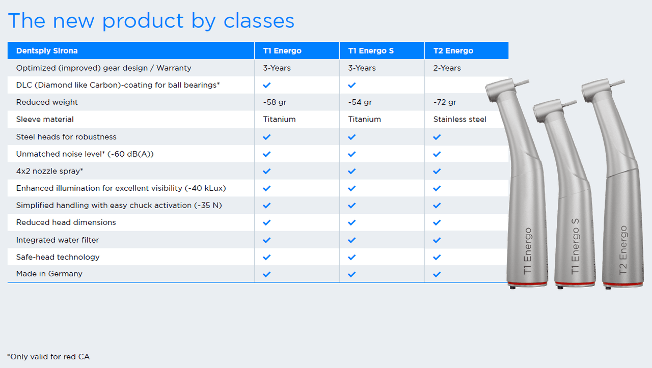 ** Endurance tests show a multiple higher lifetime against the current models. Study with measurement results of the current and new platform available on request (contact@dentsplysirona.com)