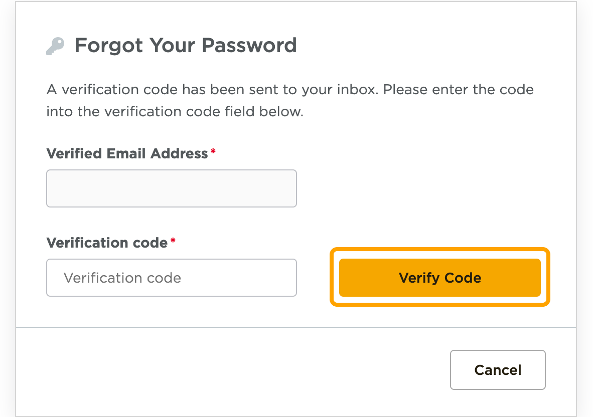4. Enter the verification code that was sent to your inbox, then select Verify Code