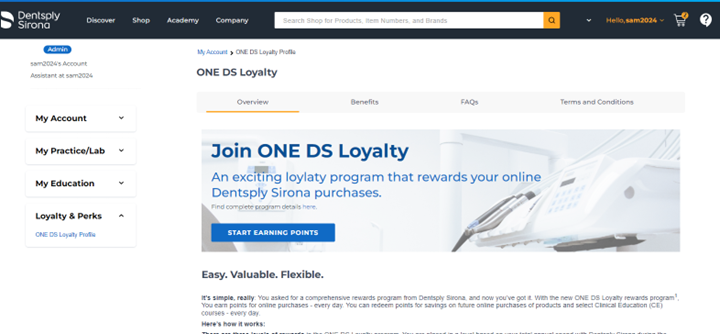 ONE DS members earn points on all eligible Dentsply Sirona products purchased. This includes offline purchases, online purchases at dentsplysirona.com and purchases through our authorized distributors.