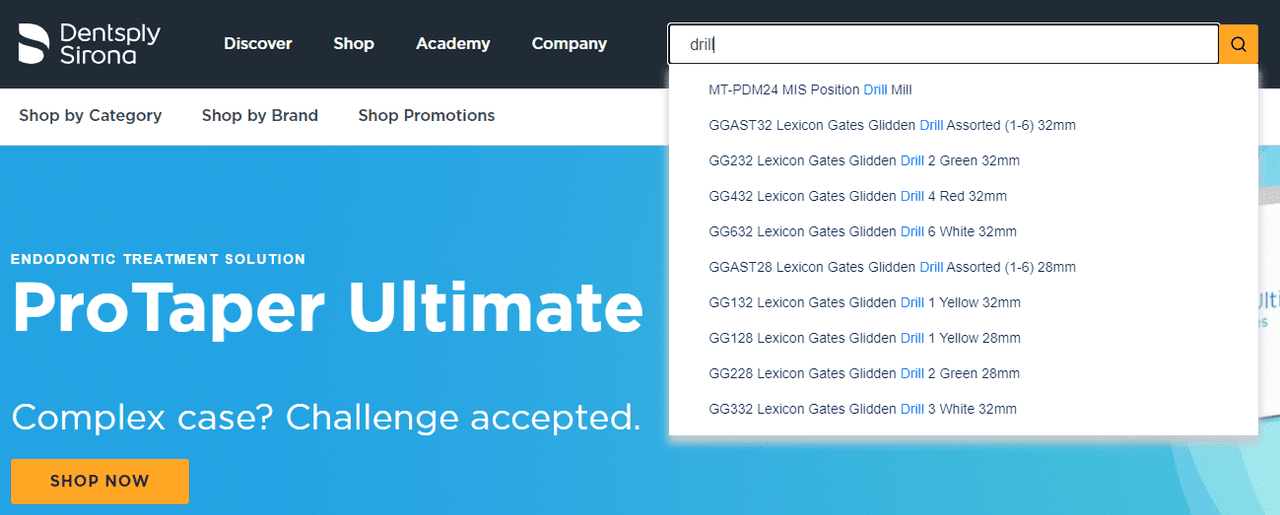 Most endodontic, orthodontic, and implant consumables can be purchased online. You must register with DentsplySirona.com to purchase items sold on DentsplySirona.com.