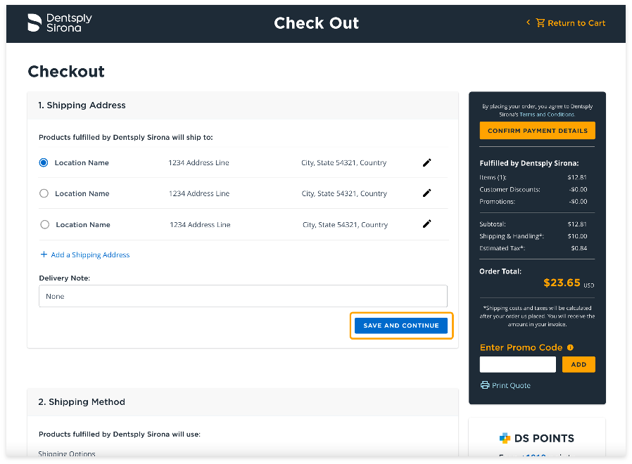 1. Under Shipping Address, select Add Shipping Address and enter the required information