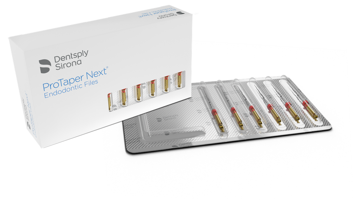 ProTaper Next features a variable taper performance but adds an off-centered, rectangular cross-section for increased file strength. The patented design's axis of rotation differs from the center of mass. As a result, only two points of the rectangular cross-section touch the canal wall at a time. Learn more about the differences of ProTaper Next and the complete assortment of coordinating products below.
