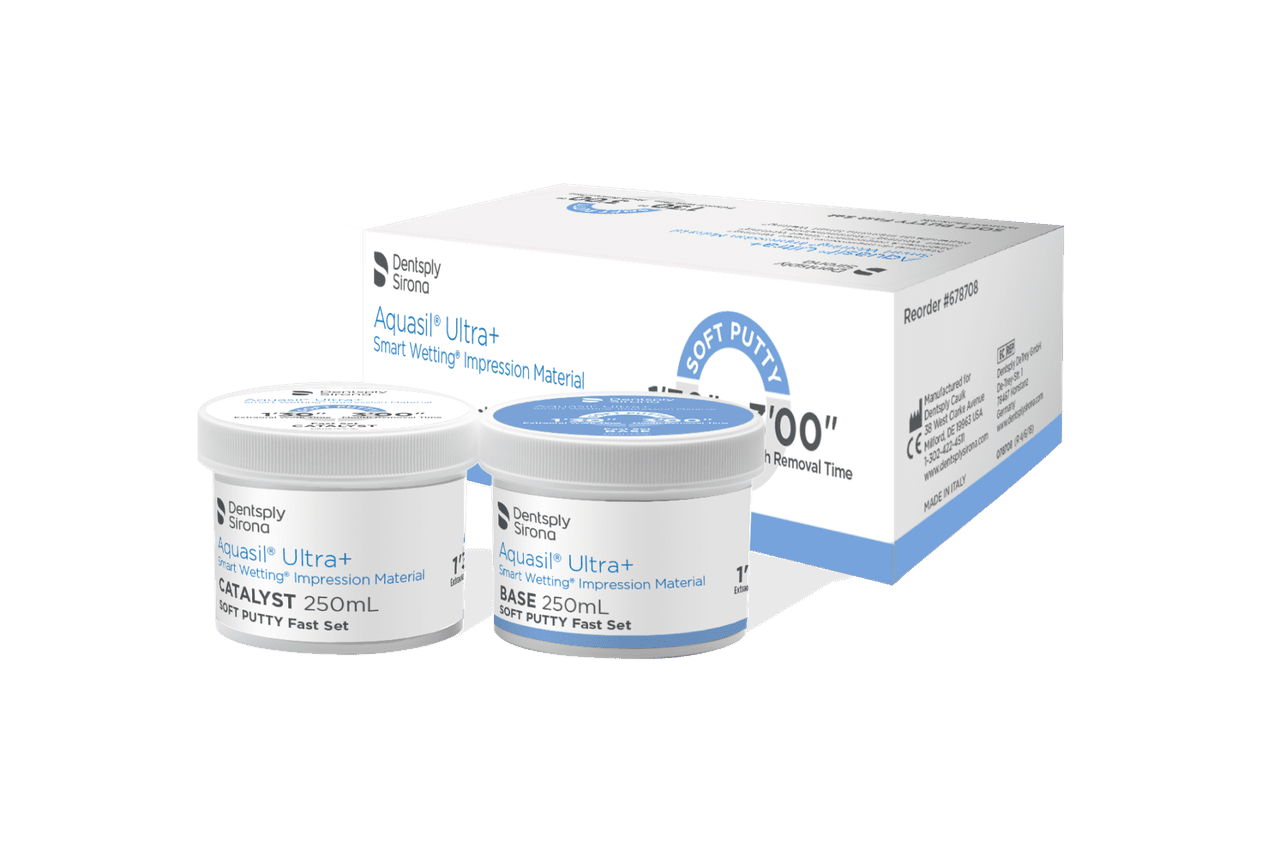 Aquasil Ultra+ impression material helps clinicians capture the detail they need and reduce the chance of voids and tears at the margin, the most common impression errors labs see.1 Its ability to capture and maintain detail coupled with precision delivery and optimal work/set times make Aquasil Ultra+ material the no compromise solution to your everyday impression needs.