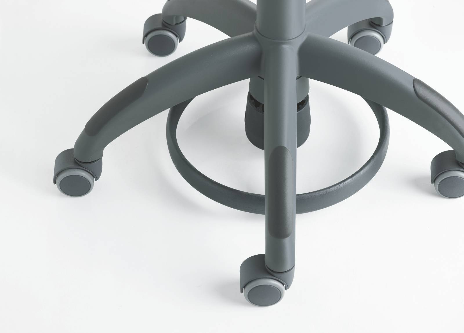 The Hugo stool can be flexibly adjusted to fit the height of each user. The foot ring of Hugo Manual Plus enables even small members of the practice team to work in an ergonomic way on the same level as the tall ones
