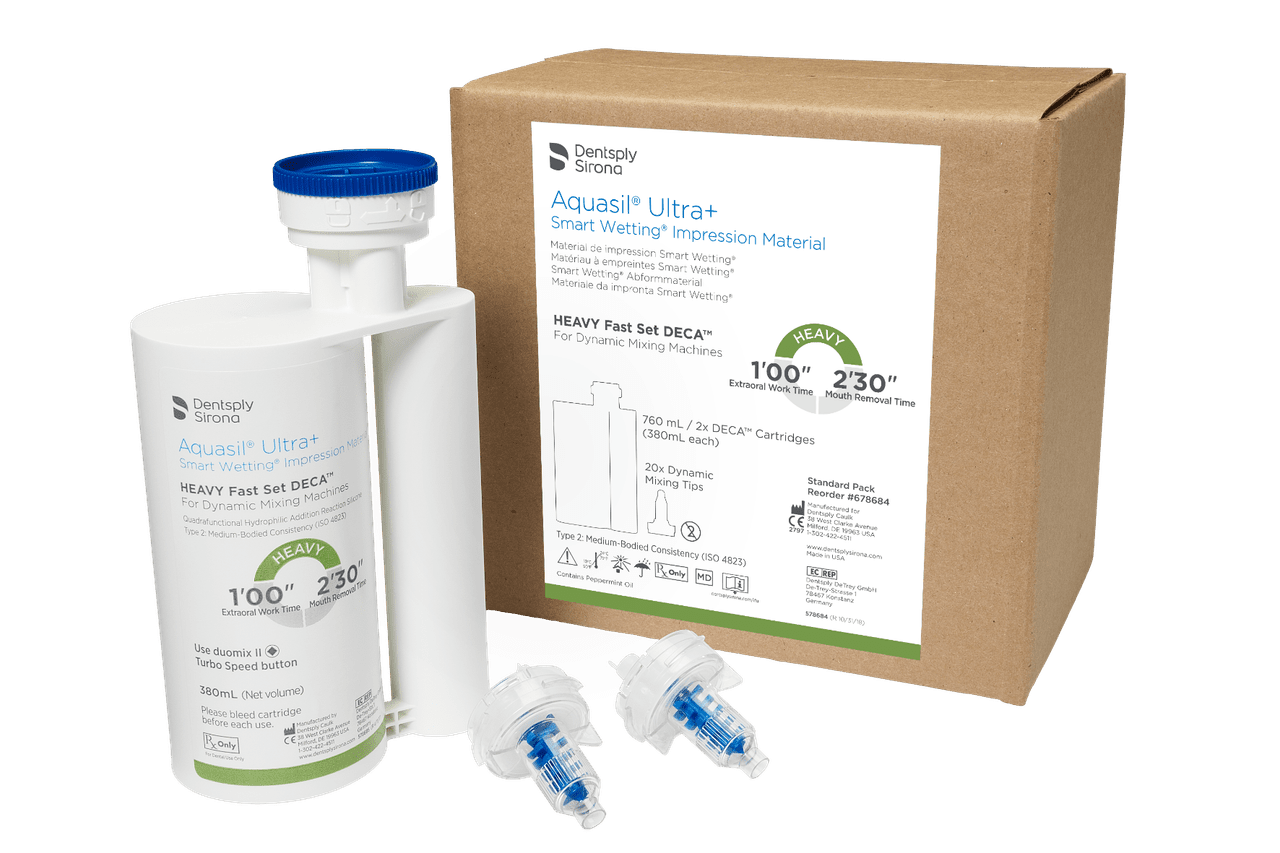 Due to customer feedback on the material waste in our mixing tips as well as setting issues when customer used low cost mixing tips, Dentsply Sirona introduced a new innovative cartridge and mixing tip delivery system for all Dentsply Sirona conventional impression materials (NCIS = New Cartridge Integrated System). The NCIS consists of new 50ml and 380ml DECA cartridges as well as new mixing and intraoral tips.