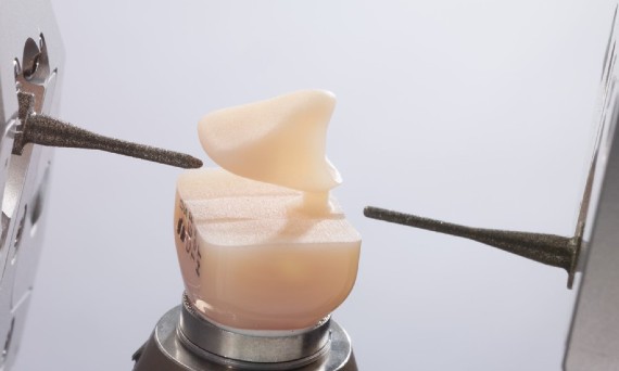 Step 1: Standard tools use fast process to remove most material, leaving a small layer around the restoration.