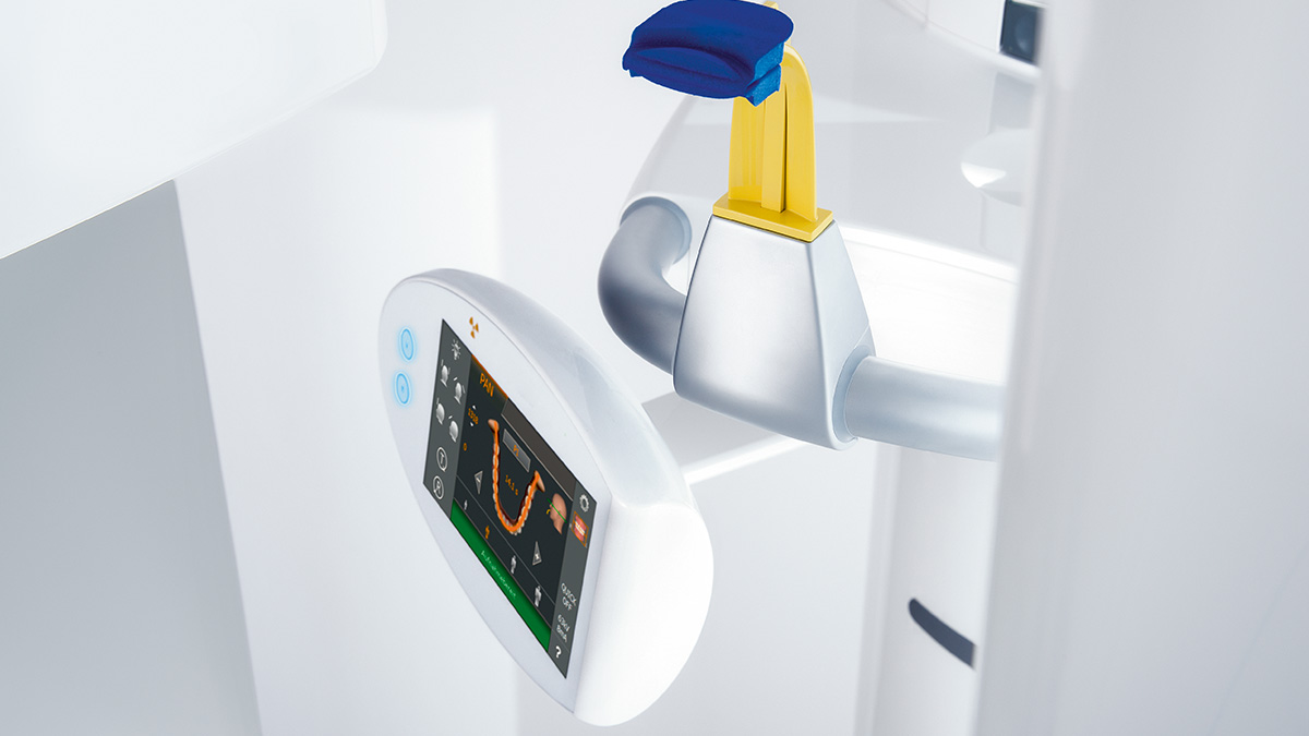 Thanks to automatic patient positioning with the patented occlusal bite block
