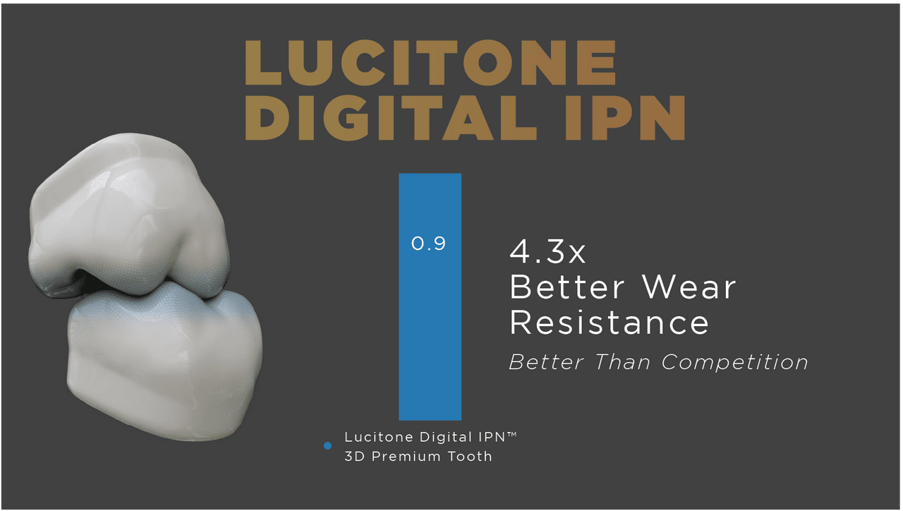 Finally, Lucitone Digital Print™ 3D Denture Base and Lucitone Digital IPN Printed Denture Teeth work seamlessly together to address a major cause for concern of patients, dentists, and lab technicians: denture teeth debonding.
