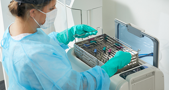 Follow manufacturer’s instructions for reprocessing (ie, cleaning, packaging, disinfecting, sterilizing) reusable dental instruments and equipment. Maintain manufacturer’s instructions in or near the reprocessing area. Use FDA-cleared devices and supplies for cleaning, packaging, and heat sterilization. 1