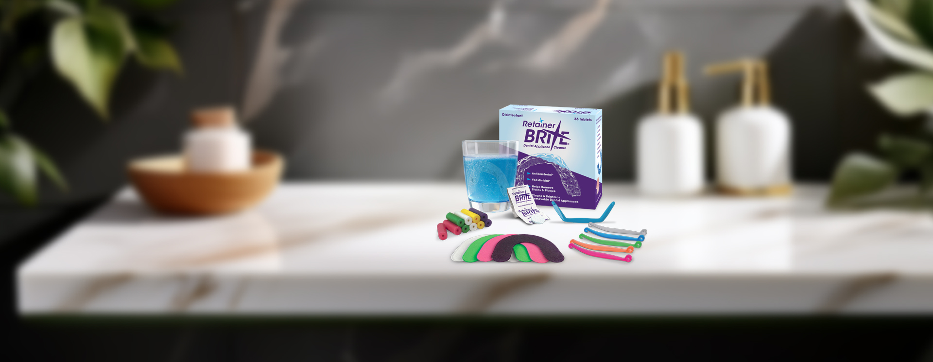 Retainer Brite® Dental Appliance Cleaner is specially formulated to help protect removable appliances by helping remove stains and plaque, killing common odor-causing bacteria* and preserving clarity and cleanliness of the appliance. Safe for cleaning dental appliances such as clear aligners, clear retainers, wire retainers, dentures, mouthguards, nightguards, bruxing and TMJ appliances.