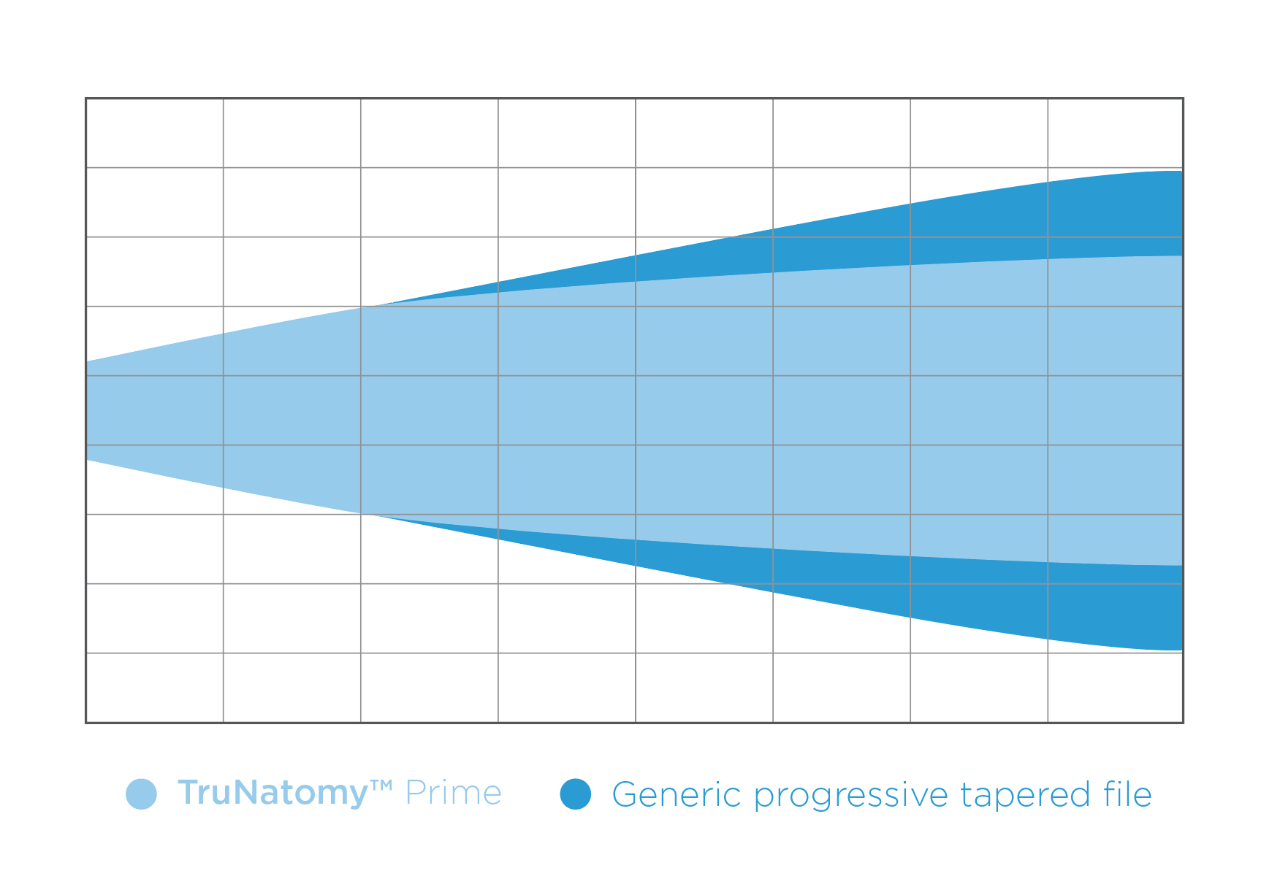 Las limas TruNatomy® proporcionan seguridad mejorada, ya que el riesgo de rotura se reduce debido a su mayor flexibilidad y resistencia a la fatiga cíclica.