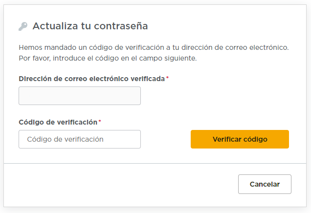 4. Introduce el código de verificación que se ha enviado a tu bandeja de entrada, luego selecciona Verificar código