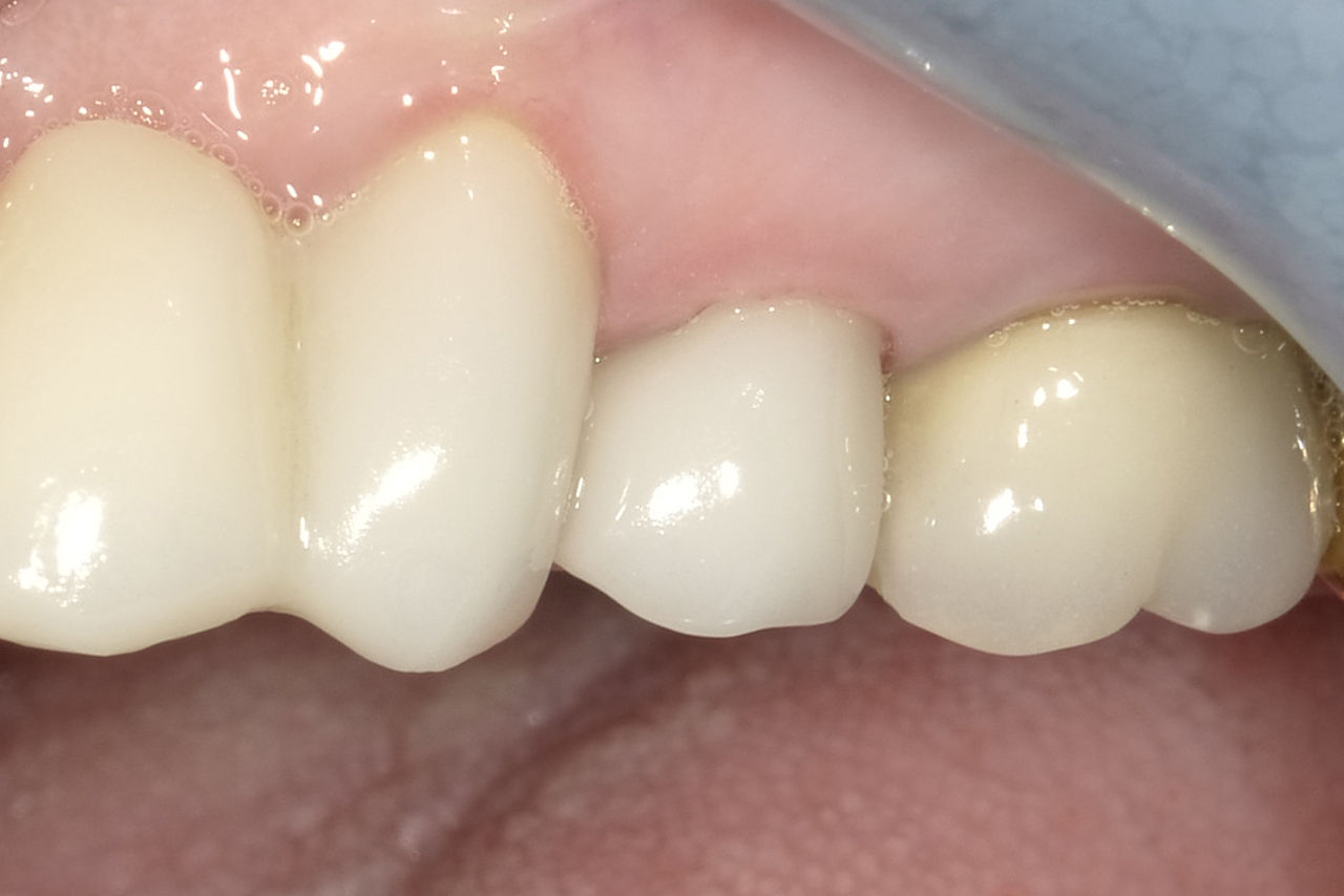 El paciente estaba muy contento con el tratamiento de conservación del diente en una sola visita. La corona hecha de CEREC Zirconia MTL proporciona alta resistencia y muy buena estética.
