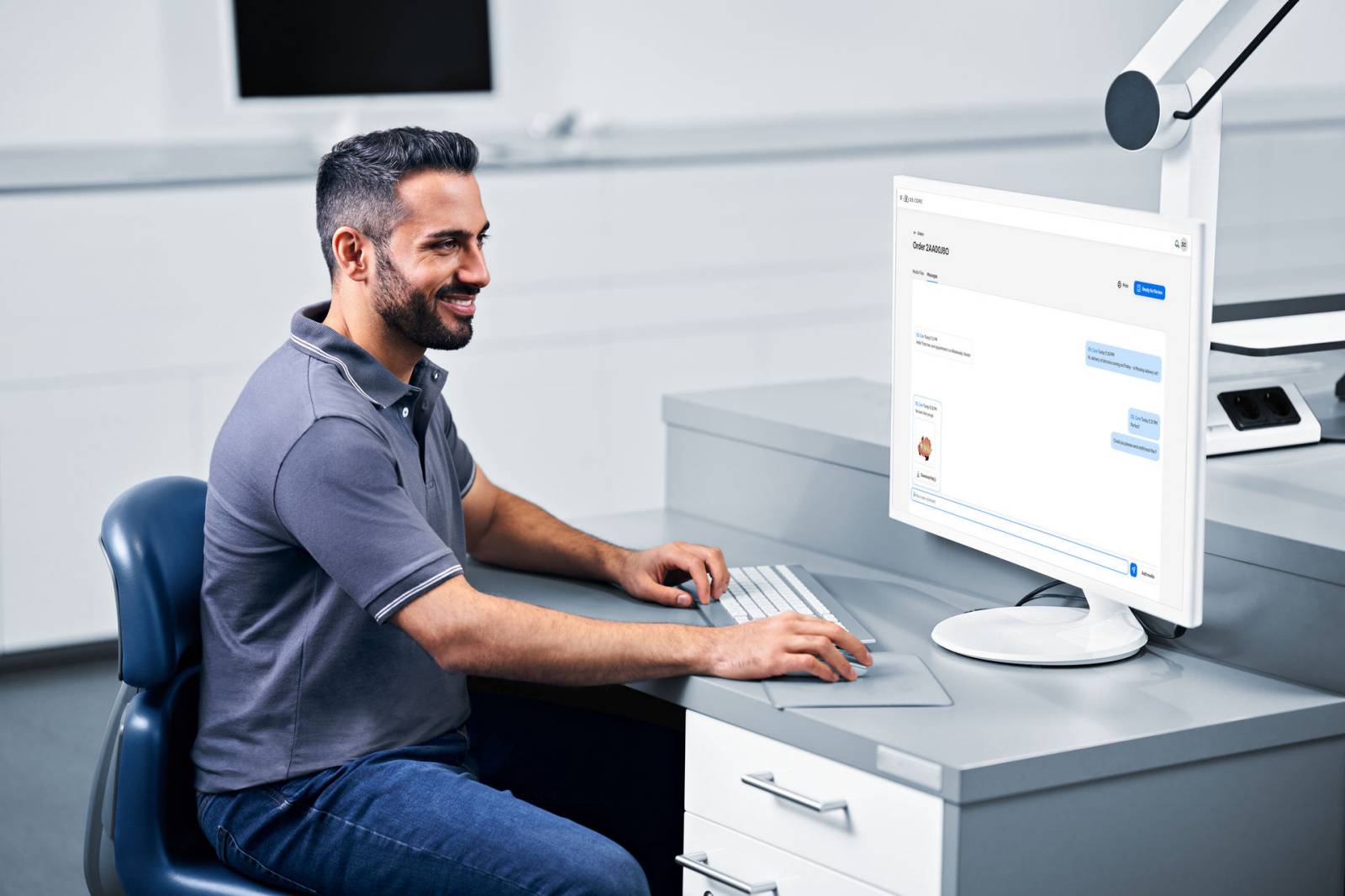 Subcontrate y solicita servicios como laboratorio cuando sea necesario. No importa si está trabajando con otro laboratorio o con los servicios de Dentsply Sirona, inicie, gestione y supervise los pedidos esté donde esté.