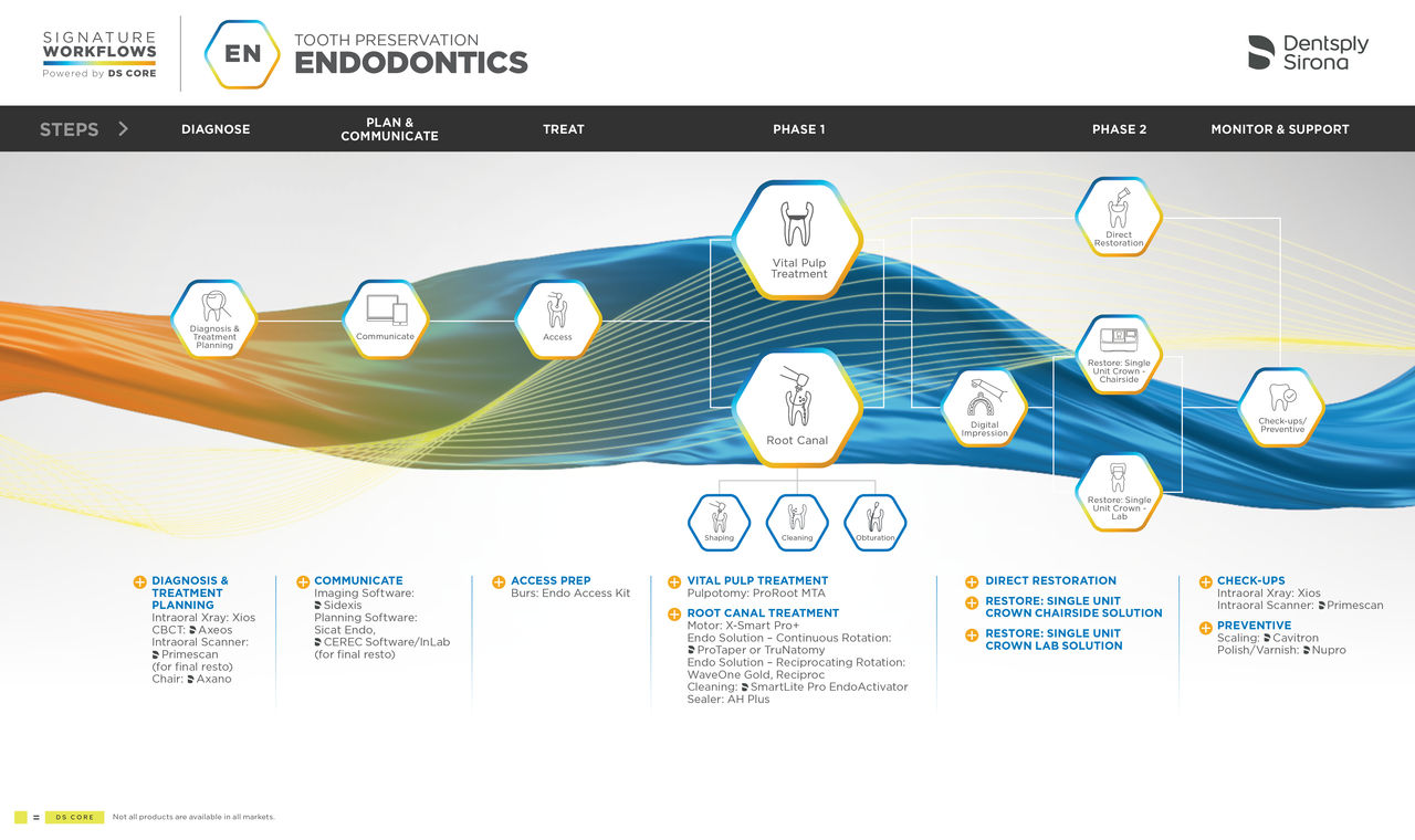 El flujo de trabajo Signature™ para endodoncia integra un ecosistema de productos y soluciones de tratamiento construido en torno a sus procedimientos en un flujo de trabajo eficiente.