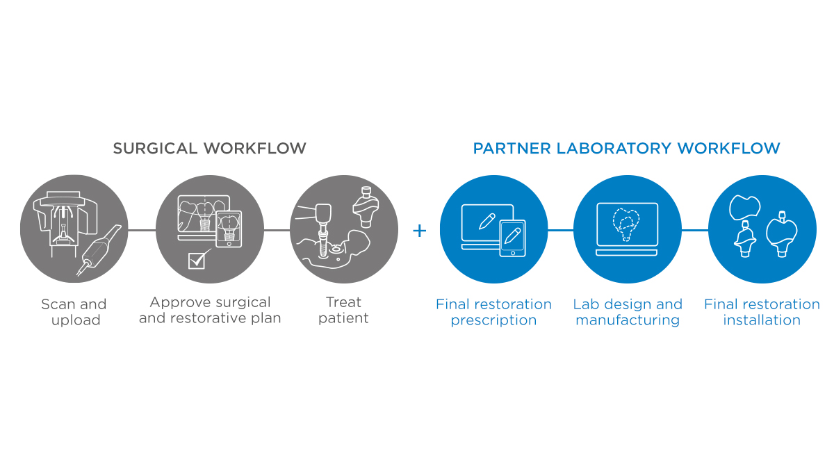 La proposition de traitement est planifiée par nos techniciens expérimentés en chirurgie et conception de restaurations, qui se trouvent sur les sites de Dentsply Sirona Implants en Amérique du Nord.