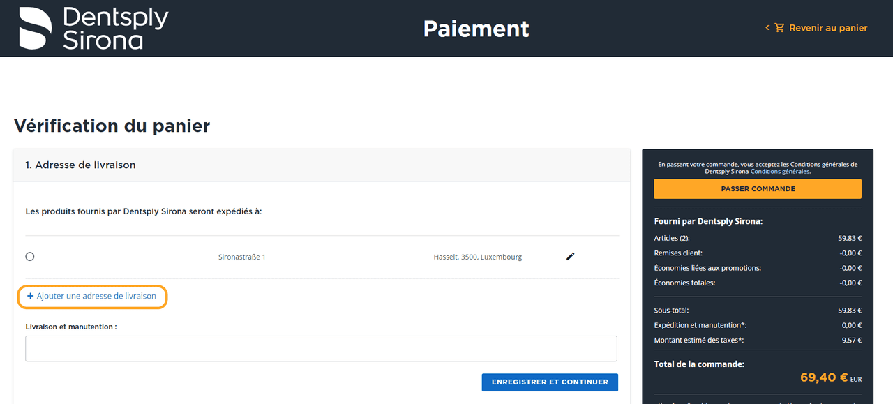 1. Sous Adresse de livraison , sélectionnez Ajouter une adresse de livraison et saisissez les informations requises
