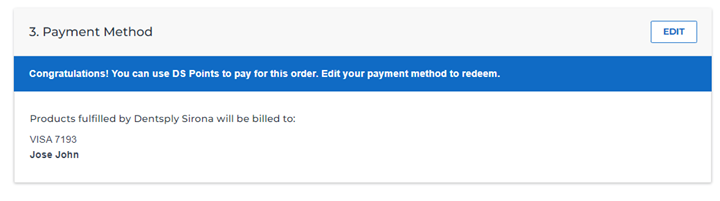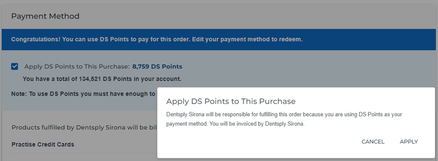 Vous pouvez échanger vos points DS contre des produits admissibles sur dentsplysirona.com. Vous devez avoir suffisamment de points DS dans votre solde disponible pour couvrir le total de votre commande, y compris les taxes et les frais d’expédition.