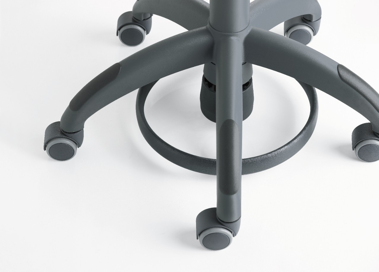 L’élément de marche sur la base du tabouret permet de soulager la position de la jambe. De plus, les éléments de marche sont remplaçables, ce qui augmente la longévité même pour une utilisation fréquente.