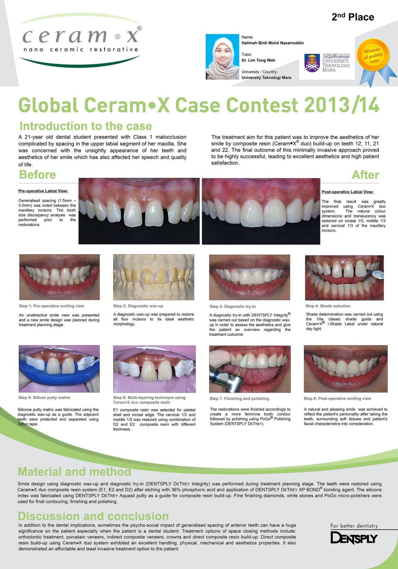 La finale globale del Global Clinical Case Contest di Dentsply Sirona si è tenuta come evento online dal vivo il 24 giugno 2021. Trecentonovanta studenti hanno lavorato duramente per eseguire trattamenti estetici clinici con il portafoglio di prodotti Dentsply Sirona. Ecco un breve video riepilogativo qui di seguito dei nostri primi 13 finalisti che hanno presentato i loro fantastici casi clinici davanti al nostro comitato di giurati che determina i primi tre vincitori globali.