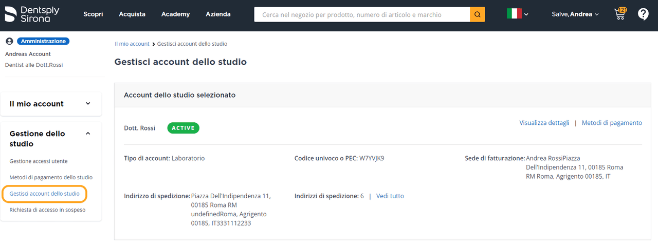 Se desideri aggiungere o rimuovere un indirizzo di spedizione al tuo account, segui queste istruzioni: