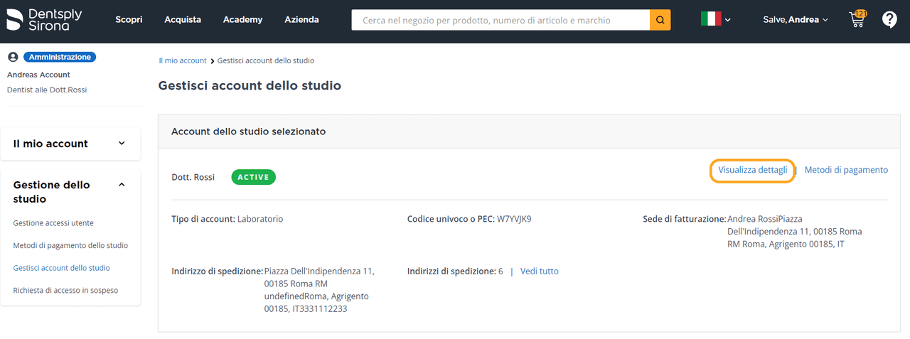 4. Seleziona il pulsante Visualizza dettagli accanto all’account dello studio che desideri modificare