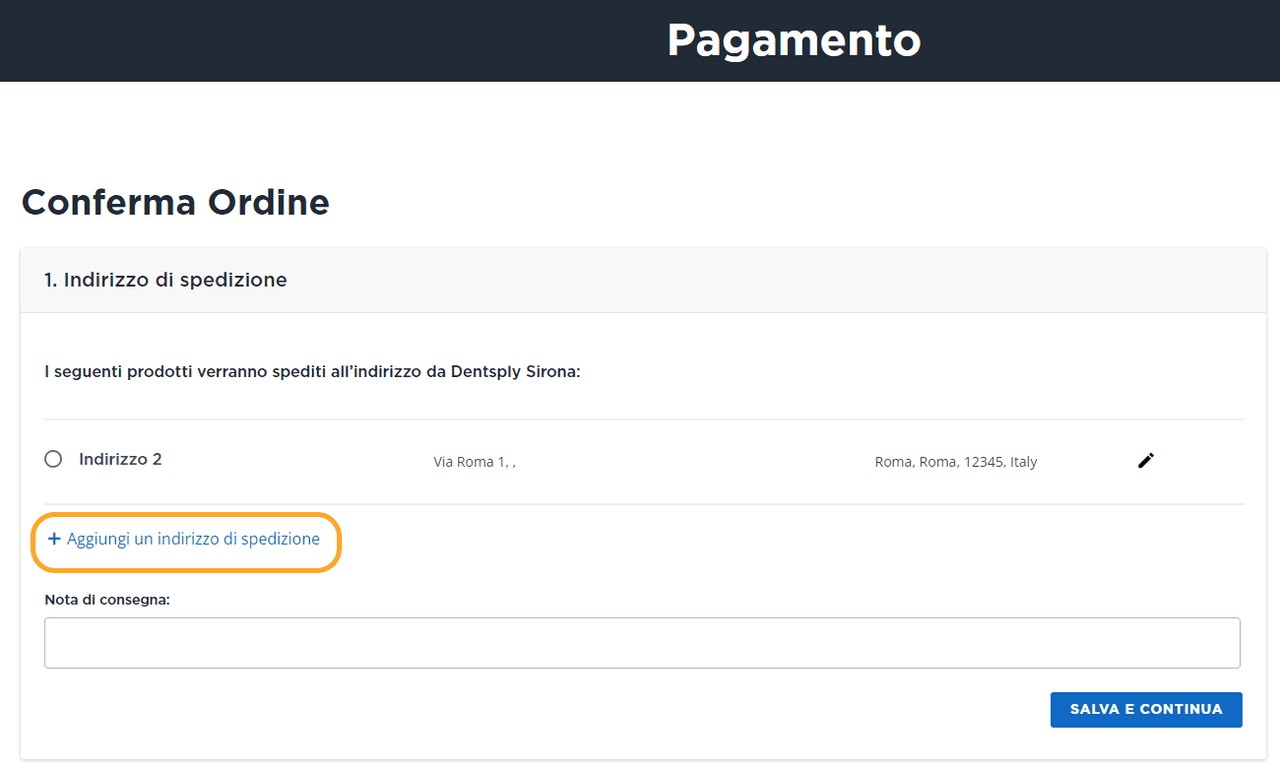 2. Seleziona Salva e continua per salvare l’indirizzo sul tuo account