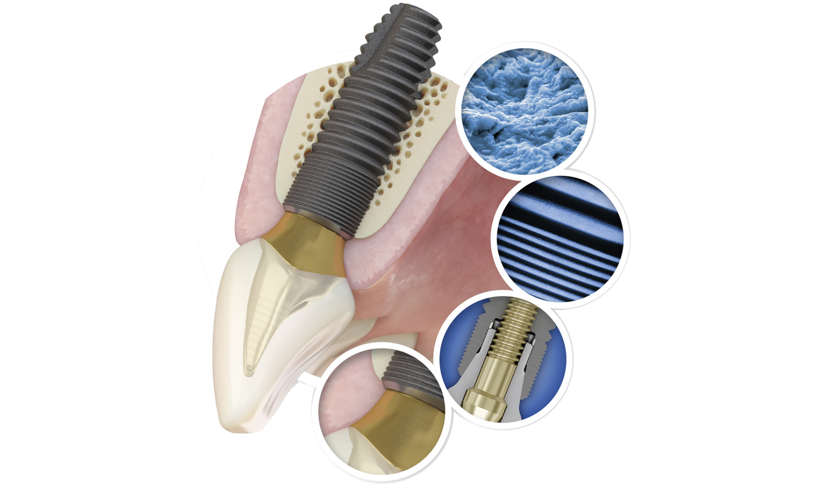 インプラント頸部の微細なスレッドにより、最適な荷重と応力の分配を提供します。