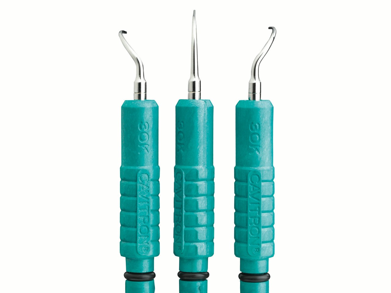 이 때문에 Cavitron insert line은 다양한 초음파 스케일링 팁을 제공하여 각기 다른 진료 요구에 맞출 수 있도록 돕습니다. 핸드 스케일링 방식의 치석 제거와 마찬가지로, 특정 수준의 치석 제거와 치아의 복잡한 해부학적 구조에 맞게 설계되었습니다.
