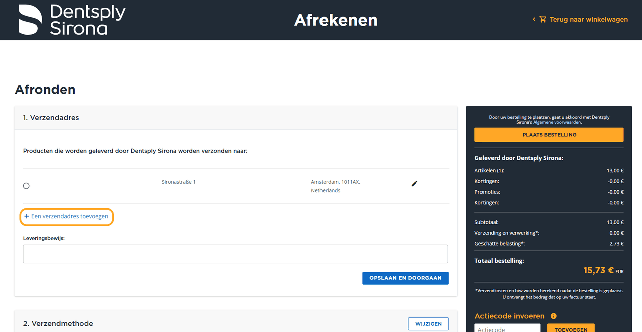 U kunt een adres aan uw account toevoegen tijdens het afrekenen van een aankoop. Volg hiervoor deze aanwijzingen: