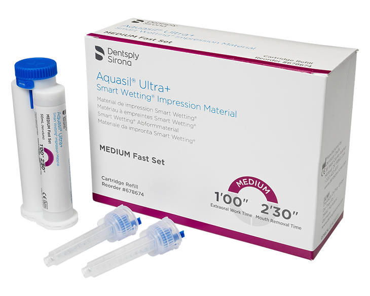 Aquasil Ultra+ afdrukmateriaal helpt clinici de details vast te leggen die ze nodig hebben en vermindert de kans op gaten en scheuren aan de rand, de meest voorkomende afdrukfouten die labs zien.1 Het vermogen om details vast te leggen en te behouden in combinatie met precisielevering en optimale werk-/uithardingstijden maken van Aquasil Ultra+ de perfecte oplossing voor uw dagelijkse afdrukbehoeften.