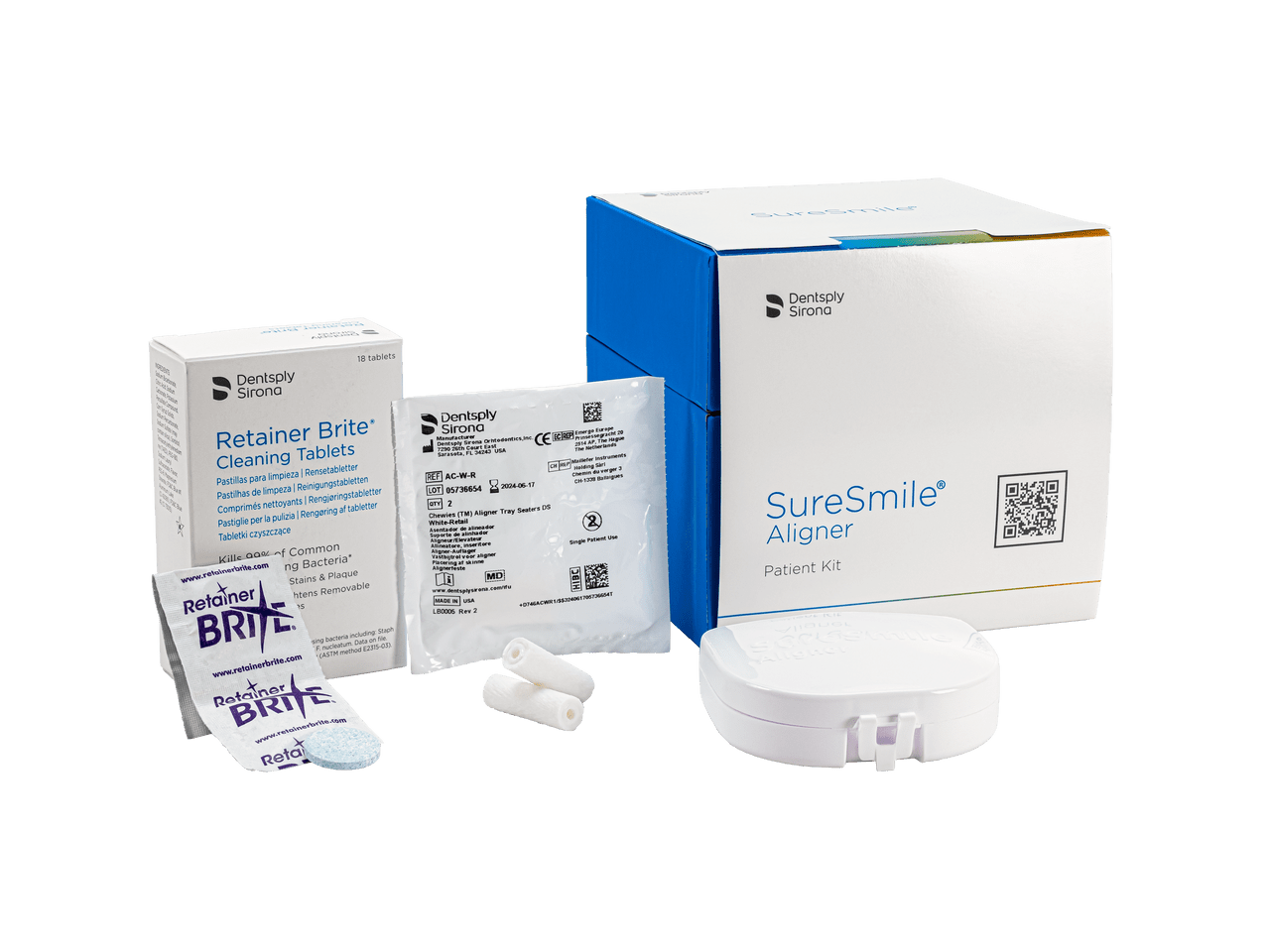 De SureSmile® patiëntenkit is samengesteld met de hulpmiddelen die uw patiënten nodig hebben om aan de slag te gaan met hun glimlach. De set bevat een apparaathouder, Chewies™ en RetainerBrite™.