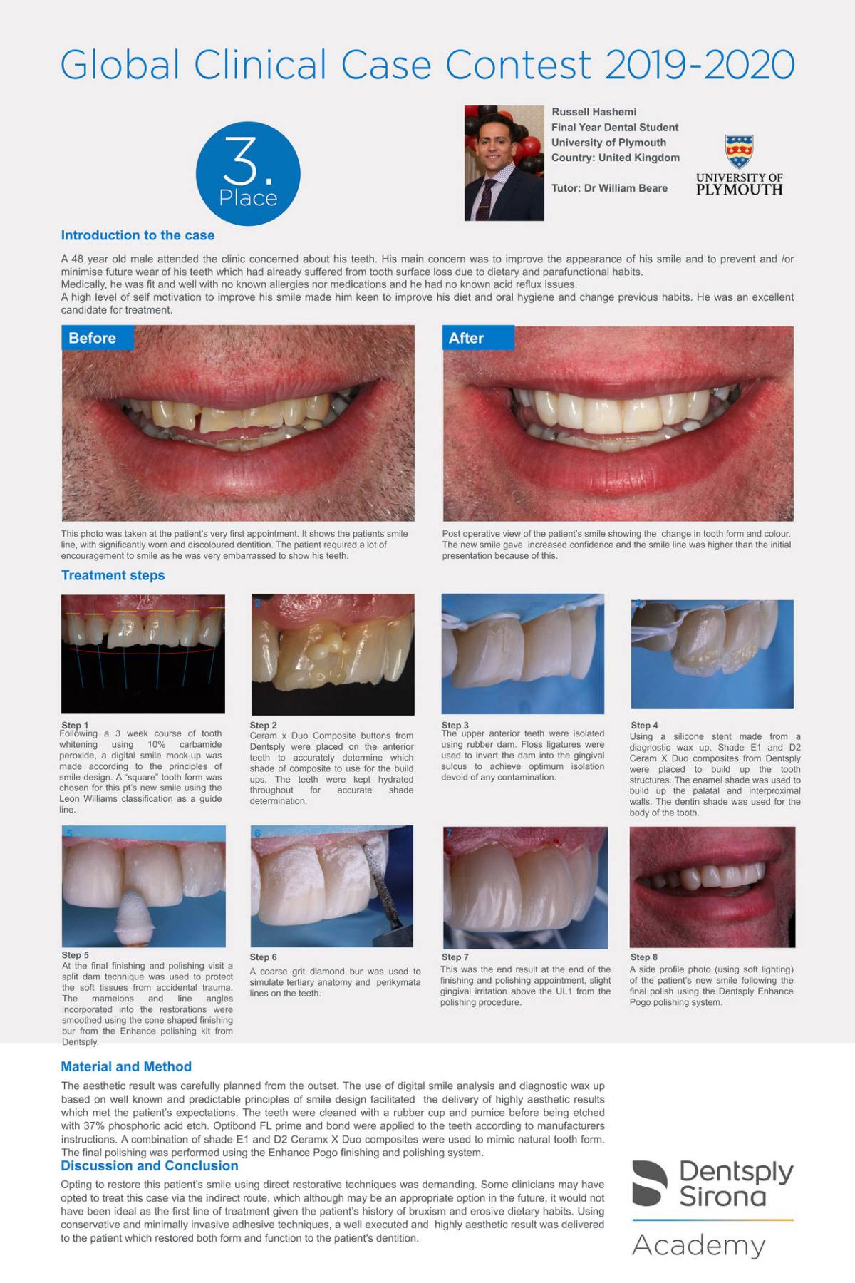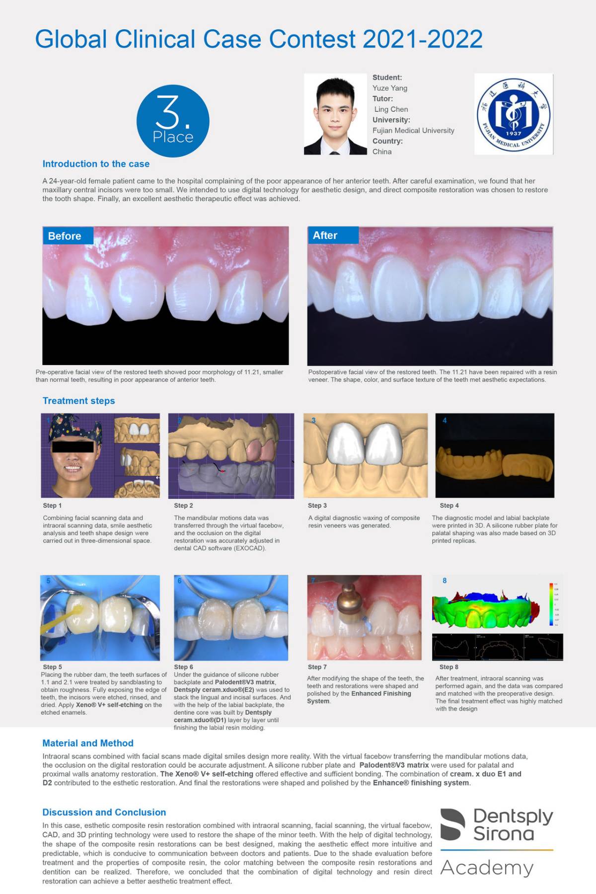 Globalny finał GCCC Dentsply Sirona odbył się 24 czerwca 2021 r. jako wydarzenie online na żywo. 390 studentów ciężko pracowało nad przeprowadzeniem klinicznych zabiegów estetycznych z wykorzystaniem portfolio produktów Dentsply Sirona. Obejrzyj krótkie podsumowanie z naszymi 13 najlepszymi finalistami, którzy zaprezentowali swoje niesamowite przypadki kliniczne przed naszym panelem sędziowskim, który wyłonił trzech najlepszych globalnych zwycięzców.