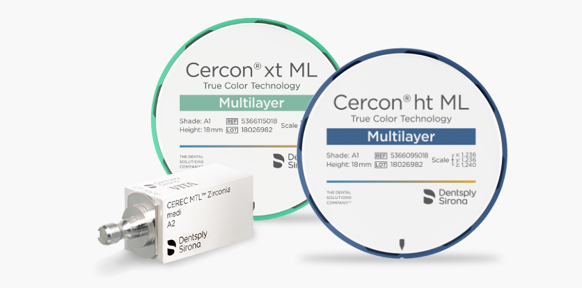 Cercon® ht ML to wielowarstwowy, hybrydowy tlenek cyrkonu o wysokiej przezierności, który łączy w sobie wysoką wytrzymałość z naturalną estetyką. Od pojedynczej korony po 14-punktowe mosty. Bez ograniczeń w pozycjonowaniu projektu w dysku nawet dla mostów o dużej rozpiętości. Doskonałe dopasowanie kolorów dla wszystkich 16 kolorów VITA®¹ i BL2.