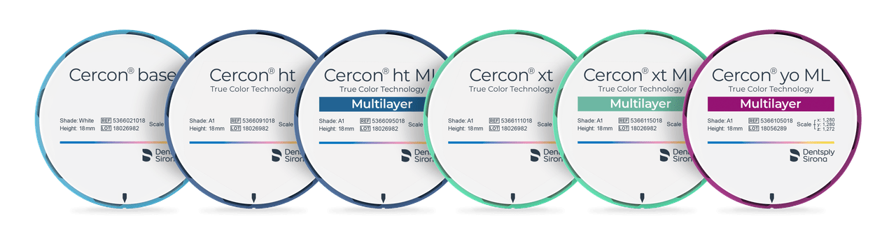 No campo de todas as cerâmicas, o óxido de zircónia é um material líder. É um material totalmente cerâmico (sem metal) e oferece excelentes propriedades para utilização dentária: Resistência superior, robustez e resistência à fadiga, além das propriedades de desgaste e biocompatibilidade. A Dentsply Sirona foi pioneira nesta área com mais de 25 anos de experiência. A zircónia tornou-se popular com a introdução como material pré-sinterizado (Cercon) para produção eficiente e económica em processos CAD/CAM. Abrange uma grande variedade de indicações, desde coroas individuais até pontes de 14 unidades.