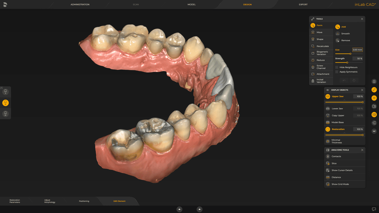 A técnica de corte é particularmente adequada para uma individualização mínima, especialmente da área incisiva.