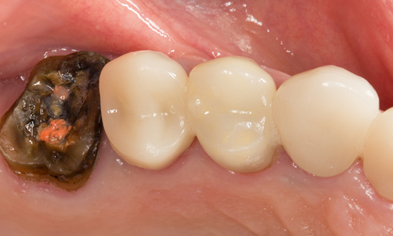 O paciente ficou muito satisfeito com o tratamento de preservação dos dentes numa única consulta. A coroa feita de zircónia CEREC MTL oferece elevada resistência e uma excelente estética.